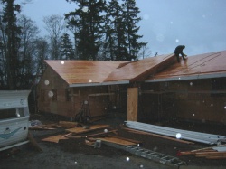 When last we looked in the middle of December, the framing of the basement had just been completed. We now have a roof and work is accelerating. But, I get ahead of myself.