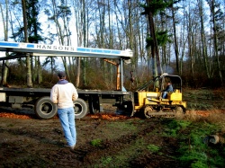 the walls up, we needed a roof. The muddy slope caused a problem in getting